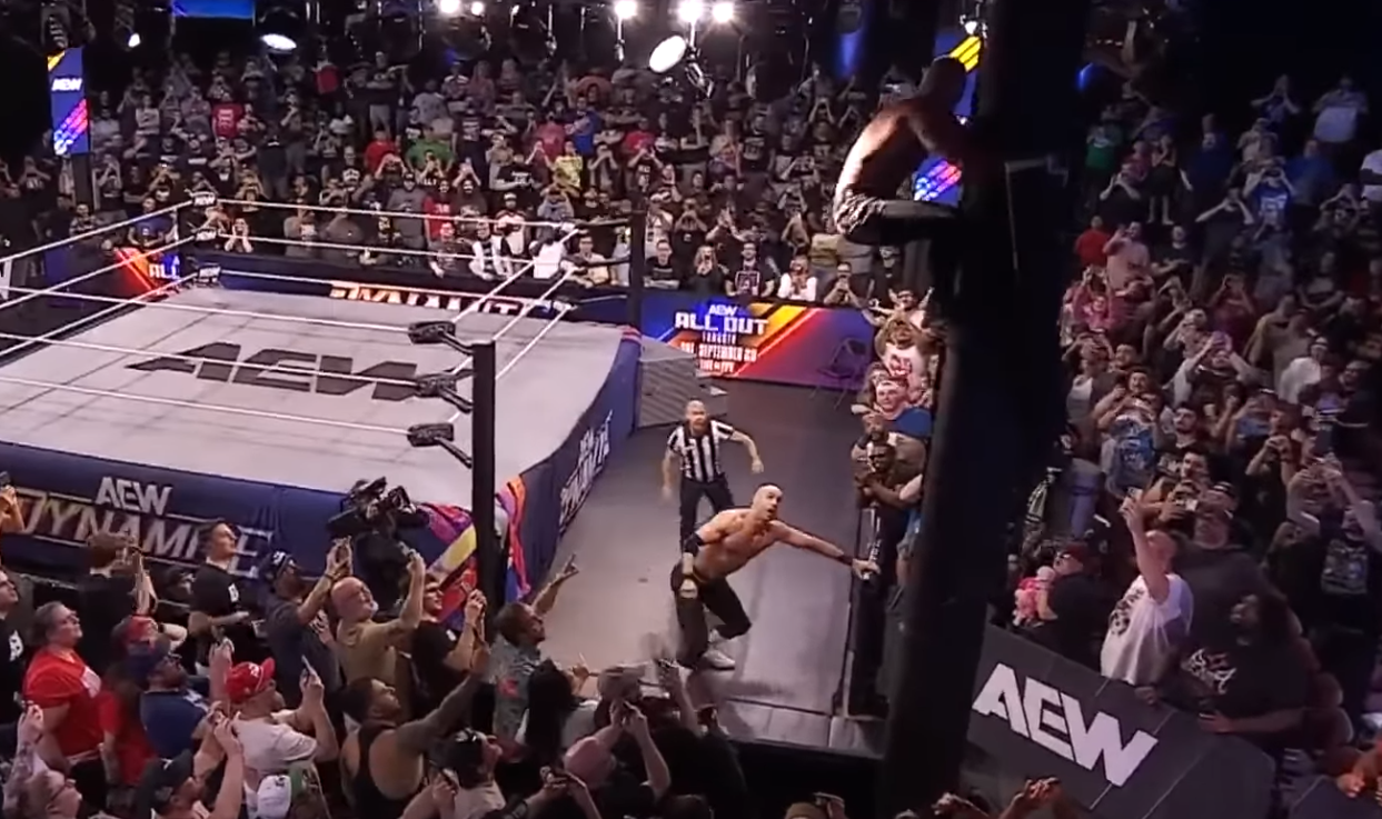 And here was Darby, thrown from the ring to the crowd by Ethan Page.