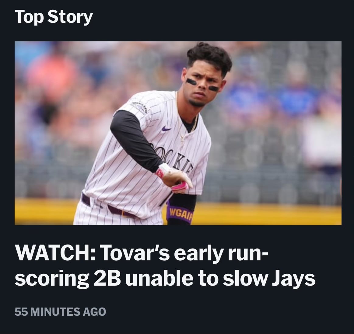 - Speaking of that series between the Blue Jays and the Rockies, it yielded one of my favorite headlines ever. Courtesy of the Colorado Rockies team page (MLB.com):
